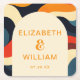 Diese knallharten, farbenfrohen, retro, wavy boho Hochzeitspapier Untersetzer können mit Ihren Informationen in der modernen Typografie personalisiert werden. Entwickelt von Thisisnotme©