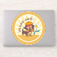 Fade-proof und kratzbeständige große Aufkleber für nahezu überall sind mit einer klug gekleideten Dackel in Friedenszeichentönen und einer orangefarbenen Beret- und Bogen-Krawatte versehen. Aktualisieren Sie den Text auf einen Namen oder eine andere Nachricht, wie Sie es für richtig halten.