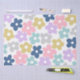 Dieses Design besticht durch ein Vintag inspiriertes 70er Jahre-Retro-Happy-Blume-Muster mit fetten, kühnen Blume in kräftigen Rosa-, Gold-, Klassik-, Minze-, Lavendel- und Weißpastelltönen. Die Blume sind Set vor weißem Hintergrund und bringen einen sommerlichen und entspannten Boho-Flair.