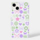 Groovy Good Vibes Y2K Butterfly Modern Girl iPhone Smartphone Case bietet ein niedliches und spielerisches, modernes y2k Muster für Schmetterlinge, Herzen, Blume, gute Vibes, Friedenszeichen und Schachbrett Brettmuster in weichem Rosa, lila und grün. Geben Sie ein einzigartiges und trendiges Geschenk für Weihnachten, Geburtstag, Feiertage, Muttertag und perfekt für Schwestern und beste Freunde. Entworfen von ©Evco Studio www.zazzle.com/store/evcostudio
