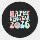 Groovy Happy New Year 2026 Party Cute New Years Ev Runder Aufkleber