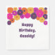 Fügen Sie jedem Party mit personalisierten Servietten eine Blume Power Touch hinzu. Diese Servietten haben Spaß an Retro-Stil und sind in lila, rosa, orangefarbenen und gelben Farbtönen gehalten. Ihre individuelle Nachricht unten koordiniert die lila Schrift.
