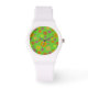 Groovy Mod Pop Blume Limon, gelb und orange lassen Sie auf diesem Retro-Gefühl sportlich weiße Uhr lächeln.