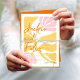 Groovy moderne, blumengelbe und rosa Hochzeit Einladung
