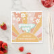 Groovy One Retro inspirierte zum ersten Mal Geburtstagservietten mit 70er-Jahren-Stil und boho Schriftart und Farben.