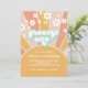 Invitation premier anniversaire Groovy One Retro Sunshine avec des marguerites et des polices de caractères et des couleurs dans le style des années 70.