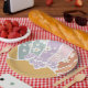 Groovy One Retro Sunshine Rainbow Daisy inspirierte die Teller der ersten Geburtstagsparty.