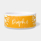 Die "Groovy Orange Daisy Blume Retro Floral Name" Tierschale, ein lebhaftes Design mit fetten Mandarinen-Tönen gepaart mit zarten, dunklen Motiven in Weiß und Weiß. Dieses fröhliche, inspirierte Muster bringt dem Alltag Ihres Haustieres eine lustige und nostalgische Touch. Mit einem benutzerdefinierbaren Namensfeld fügt diese Schüssel eine persönliche Touch zur Esszeit hinzu, während Stil und Funktion nahtlos miteinander kombiniert werden. Das saubere und moderne Design ergänzt alle Dekorationen und macht es zu einer vielseitigen Wahl für Hunde und Katzen. Ob für Ihren eigenen Pelzbegleiter oder als nachdenkliches Geschenk für einen Liebhaber von Haustieren, diese einzigartige Tierschale ist eine hervorragende Ergänzung zu jeder Zuhause.