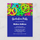 Abschluss Einladung mit einem sechzigjährigen Leben. Coole Friedensstipps in kräftigen und lebendigen Farben mit allen Farben des Regenbogens.