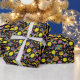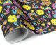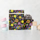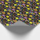 Sweet Black Wrapping Paper mit Groovy, Retro 90er-Stil Pickleball-Muster mit gelben Pickleballs und schwarzem Hintergrund.
