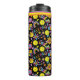 Coole schwarze Thermal Tumbler mit Groovy, Retro-Pickleball-Muster im 90er-Stil mit gelben Pickleballs und schwarzem Hintergrund.