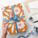 Groovy Retro Daisies Blumenmuster auf Orange Geschenkpapier