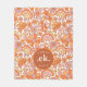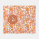 Groovy Retro Orange Florals Monogram Fleecedecke