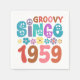 Eine cool funky Geburtstagsgeschenkidee für Hippie-Typ und -Chicks! Ein farbenfroher psychedelischer Retro-Schriftart mit Friedenssymbole und Blume.