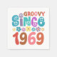 Eine cool funky Geburtstagsgeschenkidee für Hippie-Typ und -Chicks! Ein farbenfroher psychedelischer Retro-Schriftart mit Friedenssymbole und Blume.