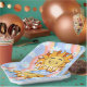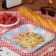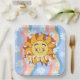 Eine Groovy Retro Summer Party Papiertafel für Picnics, die mit Wavy Daisies und Happy Sunshine entworfen wurde