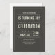Grandes invitations de type 30e anniversaire avec une typographie élégante et un design élégant gris charbon de bois. L'invitation dit : "(Nom) a 30 ans ! Rejoignez-nous pour une fête." Personnalisez les champs personnalisés avec votre propre libellé. Affichez un aperçu exact de l'invitation finie à l'écran avant de commander.