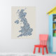 Eine typografische Textkarte von Großbritannien mit über 500 Städten und Städten im Vereinigten Königreich, blau auf weißem Elfenbeinhintergrund.
