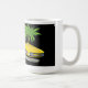 Große Kaffee-Tasse, die das BackMotor lustige Auto hinteren Motors, in einer tropischen Einstellung! kennzeichnet!