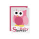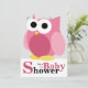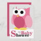 Jolie invitation à la douche à deux côtés avec une grande chouette rose illustrée à l'avant et les détails de la douche à l'arrière. Autres produits correspondants disponibles sur demande.