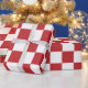 Ein Packpapier entwarf mit einem dunkelroten und weißen karierten Muster in Extragroßem. Sie können das Rot für eine andere Farbe ändern.