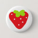 Großes Erdbeerknopf-Button. Kundengerechter Knopf hat eine niedliche große rote Erdbeere.