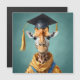 In einer herzzerwärmenden und feierlichen Szene steht eine Giraffe stolz hoch und trägt eine schwarze Graduierungshülse auf dem Kopf, die Mütze sitzt knapp über ihren ausdrucksvollen Augen, und ihr langer Hals dehnt sich hoch aus, als ob sie sich im Augenblick der Errungenschaft entspannen würde. Ein fließender Abschluss Stole zieht sich anmutig um seine Schultern und fügt eine Touch Formalität hinzu. Das Verhalten der Giraffe strahlt Stolz und Freude aus und erfasst das Wesen einer einzigartigen und unvergesslichen Meilensteinzeit.