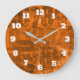 Große fette Zahlen auf brauner Orangengrunge Textu Wanduhr