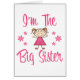 Adorable figurine en bâton, habillé en rose avec des symboles de fleurs roses. Le texte dit "Je suis la grande soeur".
