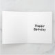 Eine anmutige schwarze Katze schnüffelt. Die Karte drin lautet: Happy Birthday.