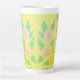 Große gelbe, geblümte latte Tasse