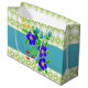 Bei jedem Anlass große Tasche Stil, Blume Akzent gemusterte Geschenktasche mit Kalkgrün, aquamarin und eine Touch von Gold und Rot, der weiße Hintergrund kann auf jede Farbe geändert werden, Text kann hinzugefügt werden, um personalisieren.