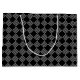 Diese große Geschenktasche wird in einem schwarzen Diamantenprint gezeigt. Passen Sie diese Tasche an oder kaufen Sie, wie es ist.