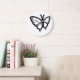 Un beau rendu en 3D, en angle, d'un papillon en noir et blanc.