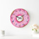 Cette mignonne horloge murale amusante est décorée d'une beigne rose aquarelle avec des arrosages. Un cadeau parfait pour les amateurs de beignes ! Aquarelle originale © Michele Davies.