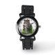 Eine wünschenswerte alte Eule sitzt auf der Armbanduhr dieses Vogelliebhabers und sieht sehr regal und streng aus. In verschiedenen Grün-, Braun- und Weißtönen ist es ein wunderschönes Bild. Vollständig anpassbar, können Sie die Hintergrundfarbe auf alles ändern, was Sie gewollt haben. Sie können auch ein Monogramm oder einen Namen hinzufügen. Sie können die Eule verändern, um mehr Platz für einen Namen oder eine Beschriftung zu schaffen.