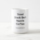 Große Kaffee-Tasse mit "ermüdete schwarzen Gurt benötigt Kaffee" Logo.