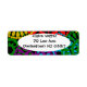 Diese Rücksendeadressen-Aufkleber haben ein Schwarzes Geschichtsbild von großen Kreisen, die aus Rindrop-Formen und Kreisen in Rot, Gelb, lila, Grün und Türkis gebildet werden.