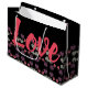Stilvolle große Geschenktasche mit einem Herzdruck in Korallen und Purpur, in schwarz hervorgehoben. Der Text kann auf jede Nachricht personalisiert werden, oder der Text kann entfernt werden. Der schwarze Hintergrund kann auch auf eine beliebige Farbe umgeschaltet werden.