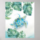 Große Meeresschildkröte und Monstera-Blätter Poster