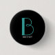 Große Monogramm und Name, Aquamarin/weiß, schwarz Button