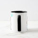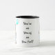 Une grande tasse blanche avec une jante et une poignée noires. L'inscription "You're as You Feel" est placée entre deux motifs assortis. Juste pour l'anniversaire du vieil homme ! (voir la carte d'anniversaire correspondante)