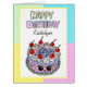 Niedliche Hand gezeichnet personalisierte whimsical pink Geburtstagskuchen Kawaii Stil mit einem Pop Kunsthintergrund. Diese Karte hat weibliche Farben, sodass sie für ein Kind, eine Tochter, eine Mutter, eine Tante oder eine Schwester niedlich wäre.
