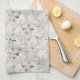 Niedliche Pyrenäen Hunde sitzen und stehen mit Pfotenabzügen und Hundeknochenmuster.