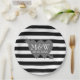 Große Teller aus schwarz-weißem Streifen. Hochzeitsvorräte sind hochwertig. Party-Teller zum Abendessen, die mit dem Namen Monogramm Braut und Bräutigam und dem Ehedatum gedruckt sind. Modernes gestreiftes Design für trendige Hochzeit. Ändern Sie die Menge, um einen günstigen Preis pro Teller zu erhalten. Stilvolles Zubehör. Ideal für Empfänge im Freien, zum Party und zur GRILLEN. Klein und groß.