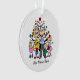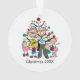 Eine Acrylverzierung des entzückenden Weihnachtsfeiertags-Strichmännchens kennzeichnet die Front und die Rückseite mit Großeltern und vier Mädchen, zwei Jungen vor dem Feiertagsbaum. Sie können die Front und Rückseite personifizieren!