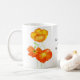 Eine weiße Ringer-Tasse mit schwarzem Rand und Griff, mit hellorangen Island Poppies aus einem Aquarellbild von Judy Adamson dekoriert. Der schwarze Text lautet "Beste Großeltern im Ganzen, Wide World!"