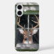 Großes Reh mit Geweih aus einer rustikalen Hütte