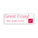 Dieses inspirierende Gummi Briefmarke Design beinhaltet die Nachricht "Great Essay!" und einen eigenen Lehrernamen. Es ist auch mit einem dekorativen Karo versehen. Es könnte von einem Lehrer oder Erzieher bei der Bewertung der Arbeit eines Schülers genutzt werden, um anzuerkennen, dass ein Schüler eine außergewöhnliche Arbeit geleistet hat.