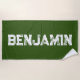 Grosser Name in Weiß auf dunkelgrünem Smaragd Strandtuch